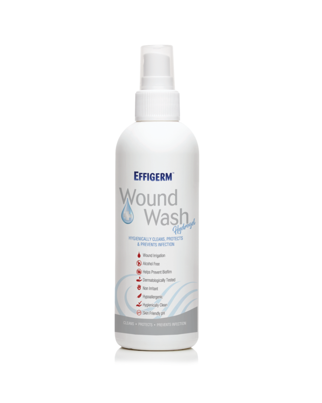 Effigerm Wound Wash – Advanced Wound Healing Technology Effigerm Wound Wash harnesses the power of patented technology known as hypochlorous acid. This revolutionary formula mimics the body’s natural immune response and is designed as a comprehensive wound irrigation solution. Effigerm Wound Wash effectively cleanses, rinses, and moisturises wounds while actively helping to prevent biofilm formation. It is suitable for managing: – Skin abrasions – Irritations – Lacerations – Cuts – Burns – Intact skin How it Works Effigerm Wound Wash acts as a topical wound irrigation solution. Its primary mode of action involves the mechanical removal of foreign bodies that may cause skin irritation or infection. It also creates an optimal wound environment by regulating: – Moisture levels – Humidity – Oxygen – pH All of which are essential for promoting faster and more effective healing. Effigerm Wound Wash is available as a spray liquid and hydrogel for ease of application. Key ingredients include: – Hypochlorous acid – Deionized water – Sodium chloride It is dermatologically tested, pH neutral, and suitable for all skin types, including sensitive or damaged skin. Why Choose Effigerm Wound Wash? Effigerm Wound Wash offers a comprehensive set of benefits not typically found in alcohol-based, chlorhexidine-based, or other antiseptic wound care products: ✔ Maintains optimum moisture levels ✔ Cools erythema and helps prevent infection ✔ Provides a cooling and analgesic effect ✔ Multi-use – can be used for cleaning and preventing infection ✔ No potentially toxic ingredients ✔ Suitable from birth ✔ Easy to use – no need to rub into sore, inflamed skin ✔ Free from perfumes, preservatives, and alcohol (or other sensitisers) ✔ pH neutral ✔ Hypoallergenic ✔ Safe if accidentally ingested ✔ No irritation to damaged skin ✔ Does not sting or burn on application ✔ Does not stain clothing and is not messy ✔ Can be used even when inflammation or rash is not visible ✔ Alcohol free ✔ Suitable for cuts, wounds, abrasions and more ✔ Helps prevent biofilm formation Effigerm Wound Wash is a safe, effective solution for promoting healing in a wide range of skin conditions, from minor cuts to more persistent irritations — for all ages and all skin types.