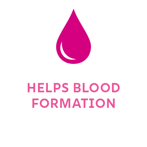 – Helps blood formation – ferrous bisglycinate, vitamin B12, folic acid